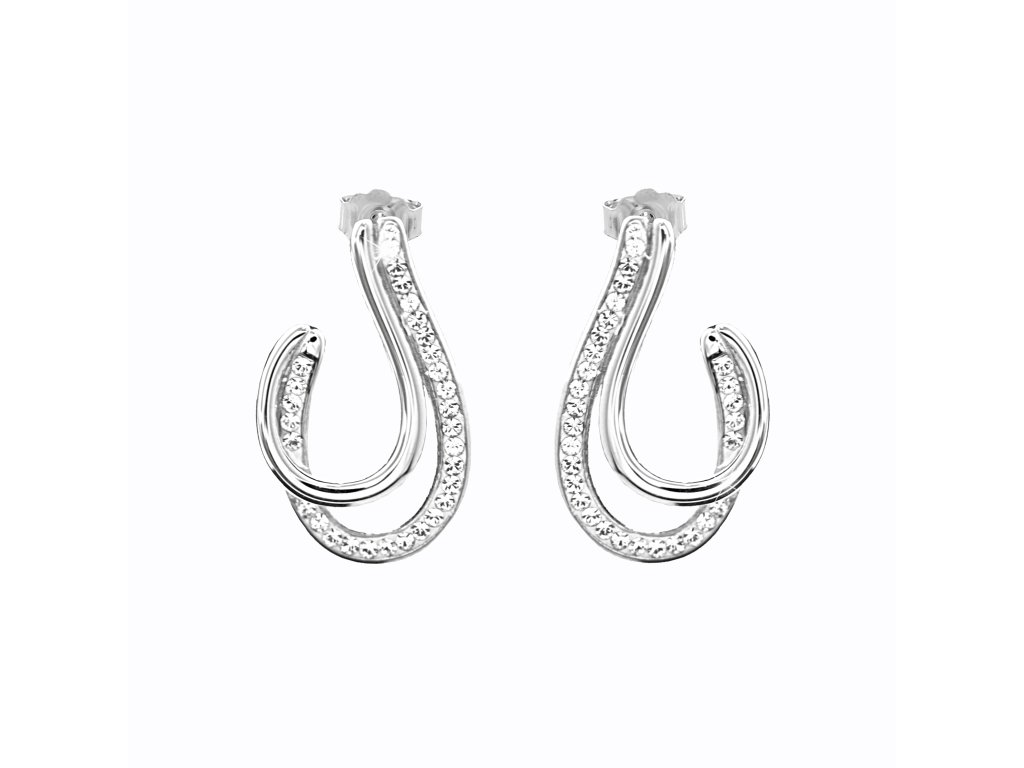 Ocelové náušnice puzety dvě vlnky s krystaly Swarovski Crystal