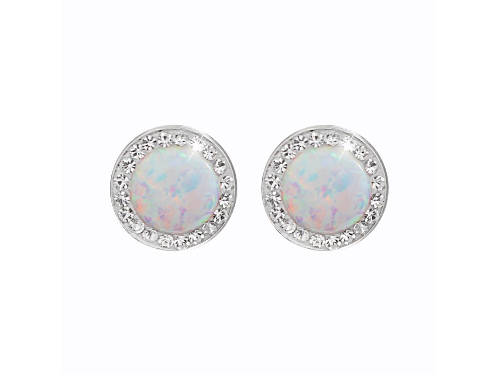 Ocelové náušnice puzety kulatý bílý opál 10 mm s krystaly Swarovski Crystal