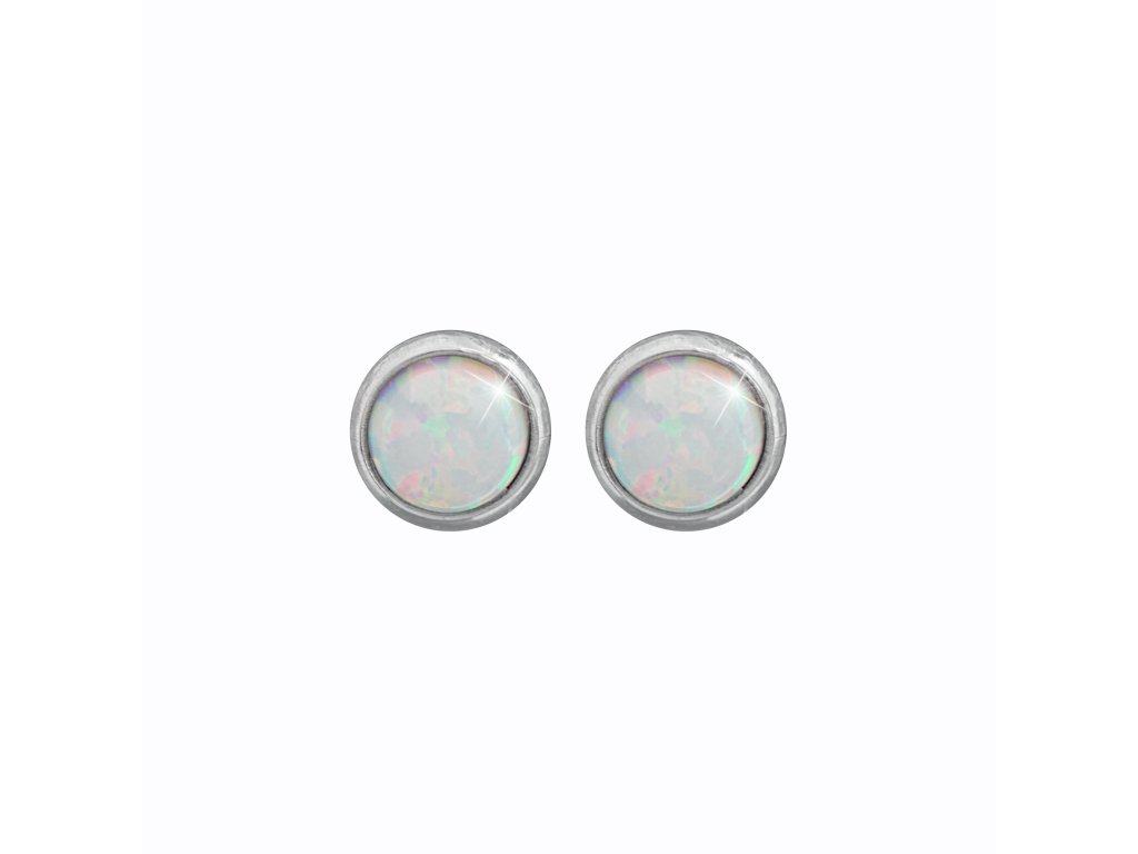 Ocelové náušnice puzety kulatý bílý opál 6 mm bez krystalů
