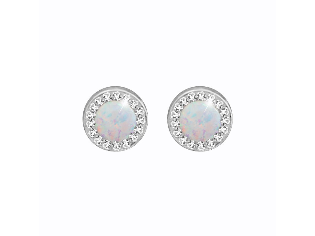 Ocelové náušnice puzety kulatý bílý opál 8 mm s krystaly Swarovski Crystal
