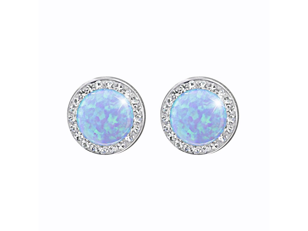Ocelové náušnice puzety kulatý modrý opál 10 mm s krystaly Swarovski Crystal