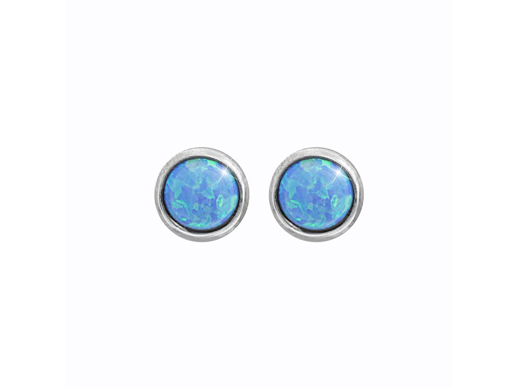 Ocelové náušnice puzety kulatý modrý opál 6 mm bez krystalů