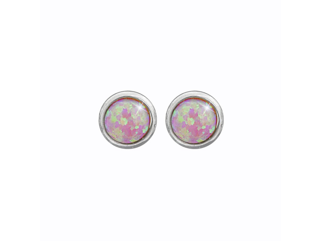 Ocelové náušnice puzety kulatý růžový opál 6 mm bez krystalů
