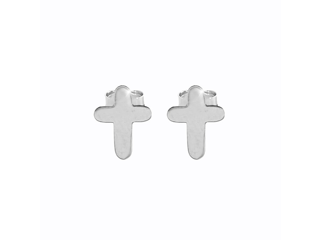 Ocelové náušnice puzety malý plochý křížek zaoblený bez krystalů