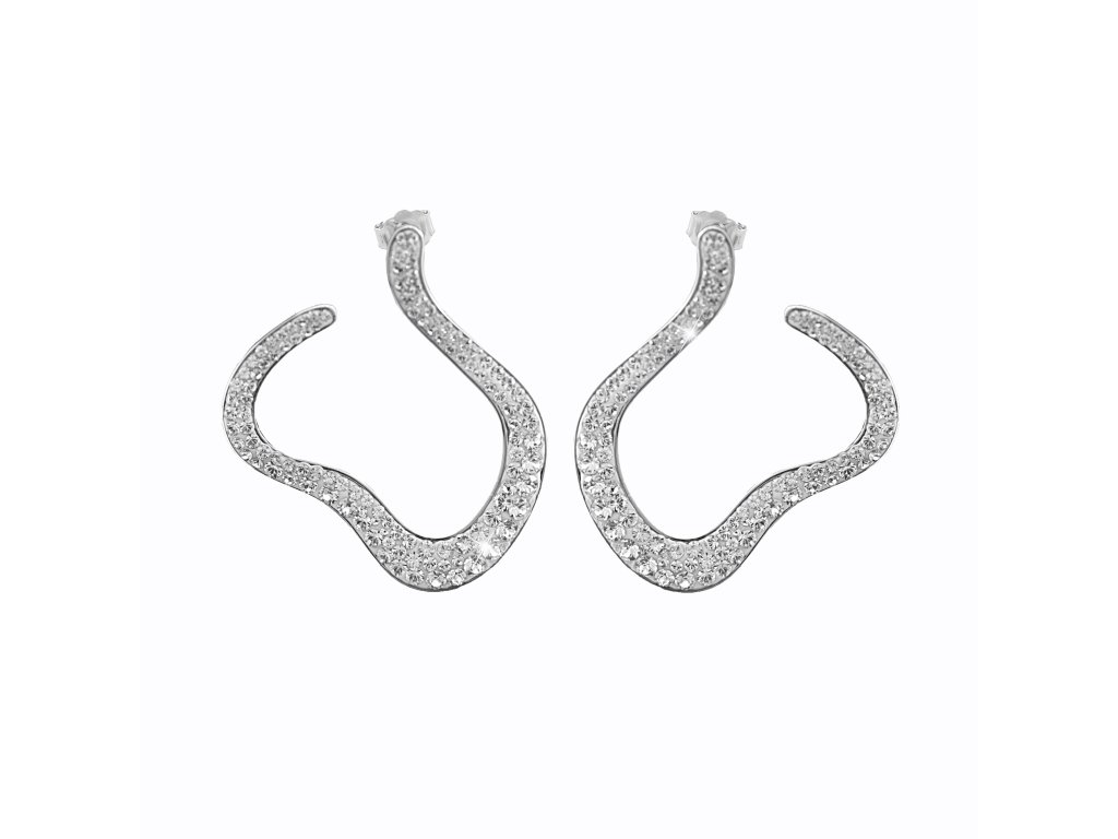 Ocelové náušnice puzety nepravidelně vlnité s krystaly Swarovski Crystal