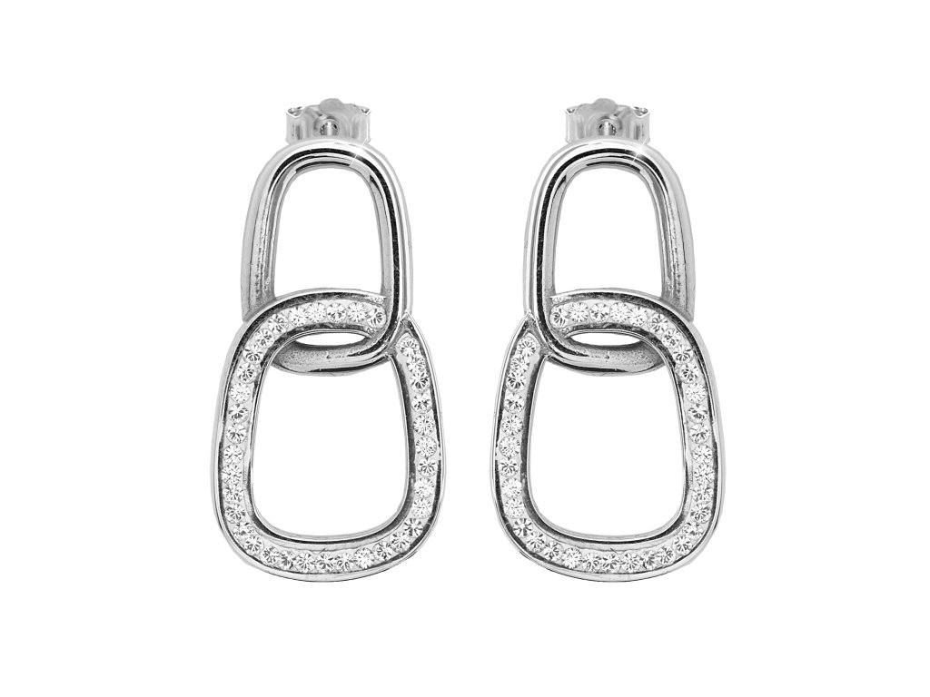 Ocelové náušnice puzety propletené zaoblené obdélníky s krystaly Swarovski Crystal
