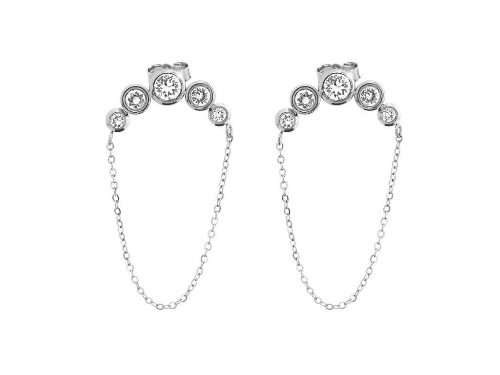 Ocelové náušnice puzety řetízek spojený s pěti krystaly Swarovski Crystal