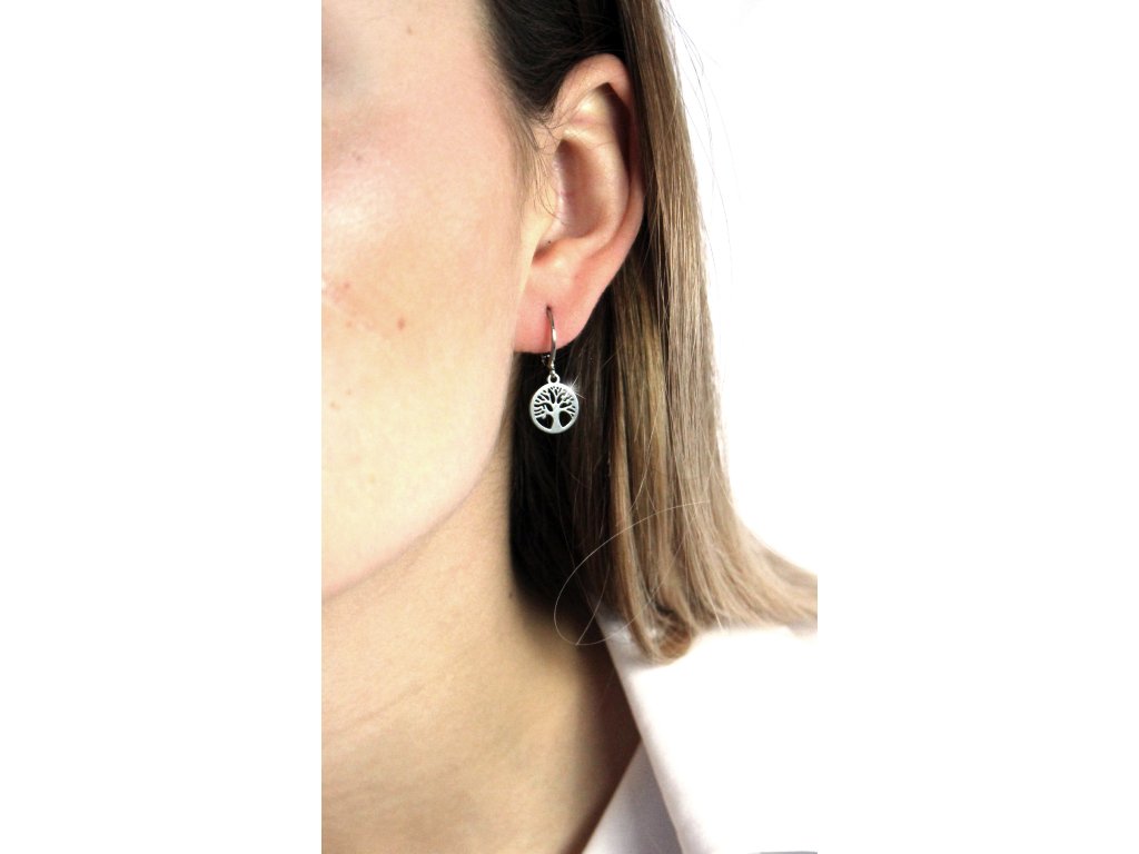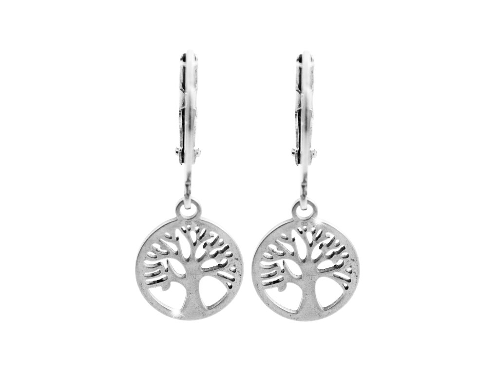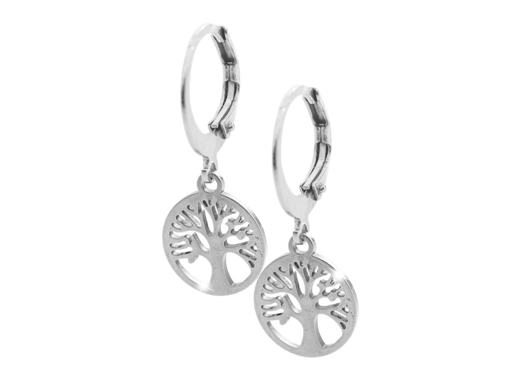 Ocelové prořezávané náušnice klapky mini strom života bez krystalů