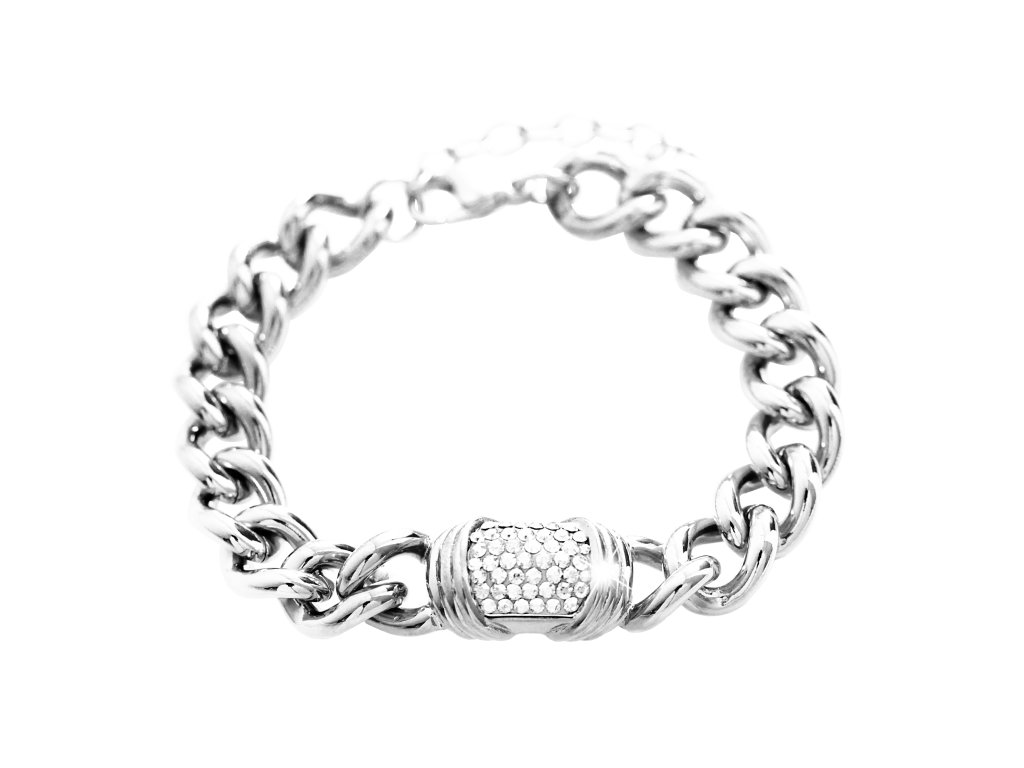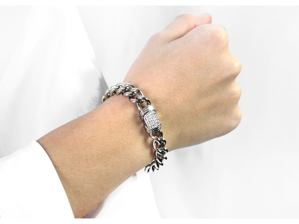 Ocelový masivní náramek řetěz s ozdobným elementem osázený krystaly Swarovski Crystal