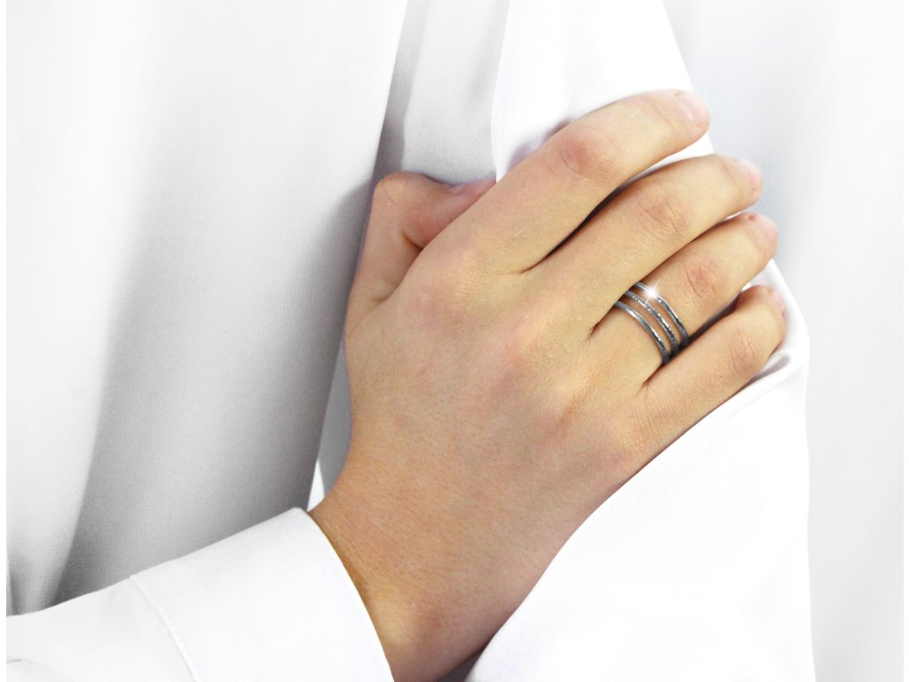Ocelový masivní prstem tři pomačkané kruhy bez krystalů