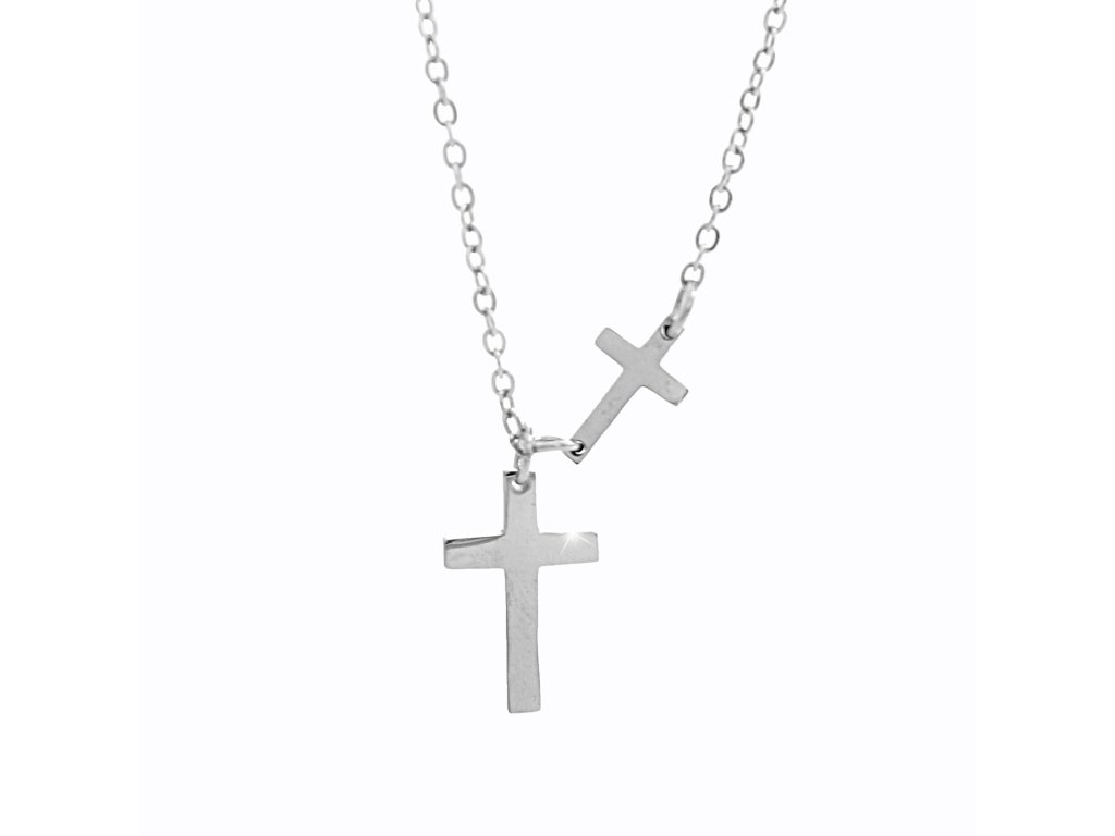 Ocelový náhrdelník dva ploché křížky bez krystalů
