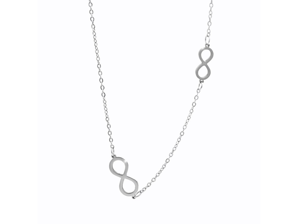 Ocelový náhrdelník dva ploché symboly nekonečna bez krystalů