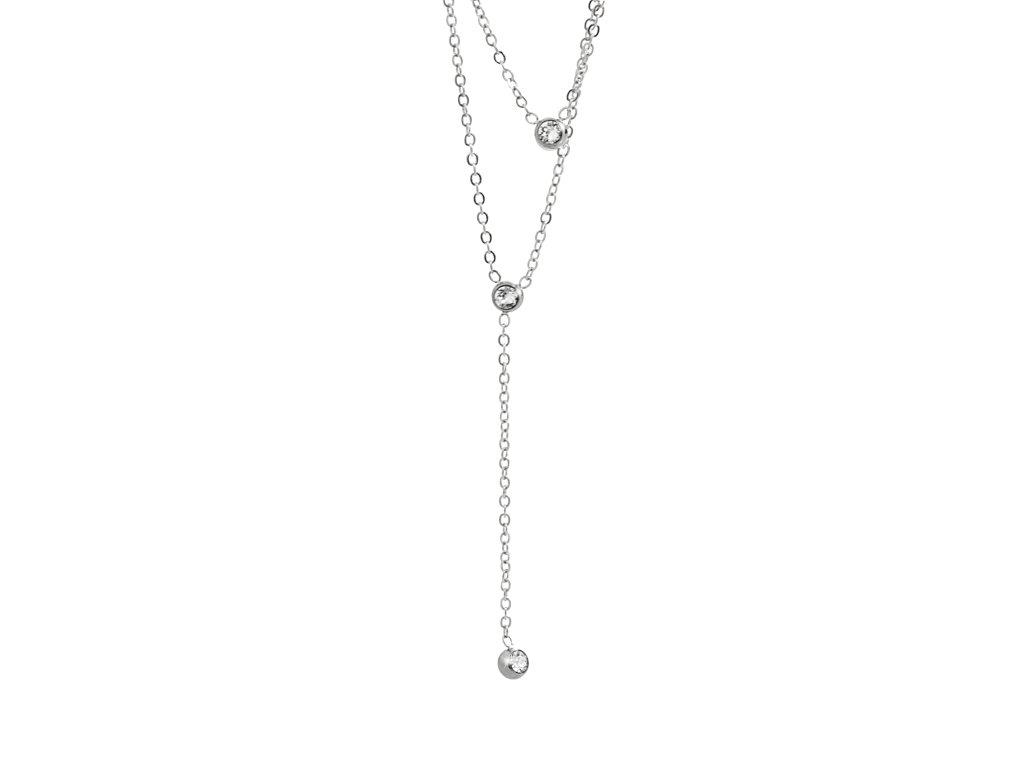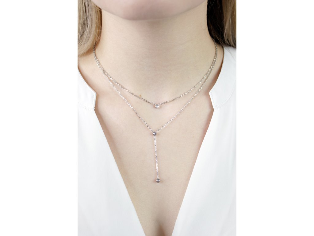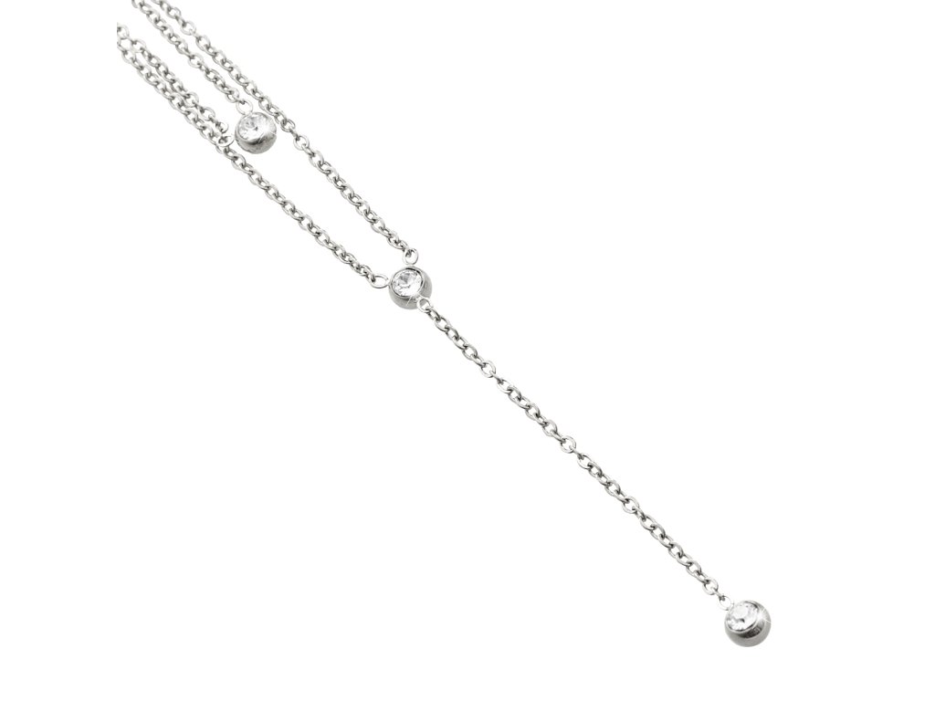 Ocelový náhrdelník dva řetízky a tři krystaly Swarovski Crystal