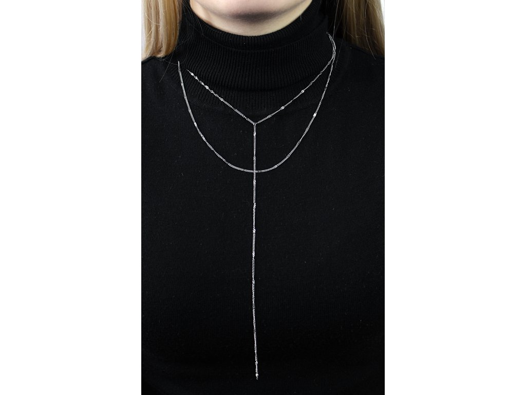 Ocelový náhrdelník dva řetízky jehož součástí jsou mini destičky bez krystalů