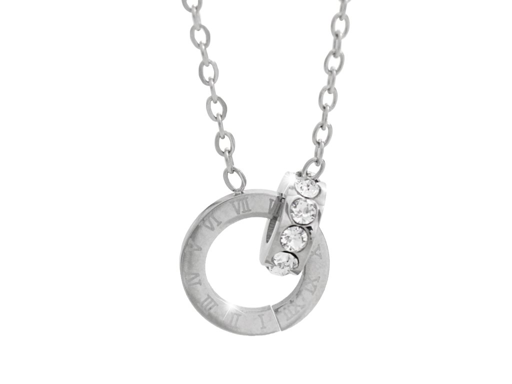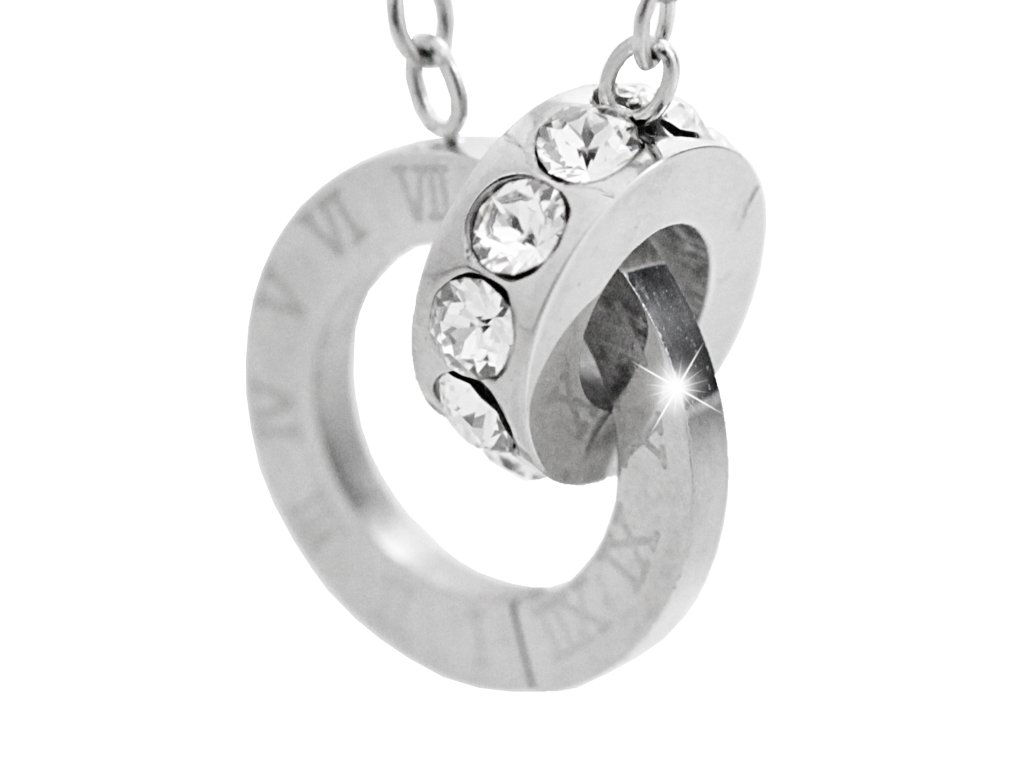 Ocelový náhrdelník dva spojené kruhy s krystaly Swarovski Crystal