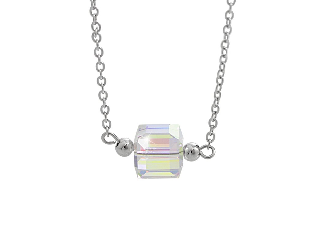Ocelový náhrdelník dvě kovové kuličky a kostička Swarovski AB