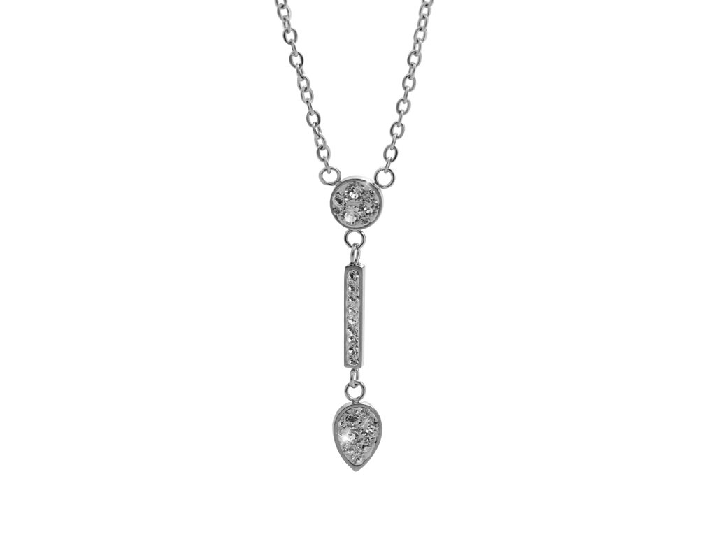 Ocelový náhrdelník kolečko, čárka, kapka s krystaly Swarovski Crystal