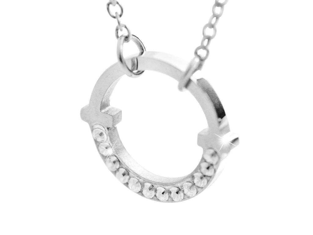 Ocelový náhrdelník kruh na půl osázený krystaly Swarovski Crystal