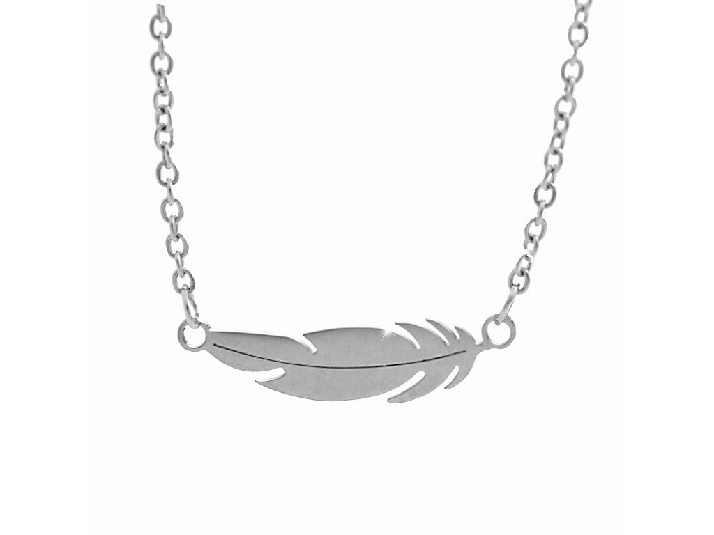 Ocelový náhrdelník ležaté peříčko bez krystalů