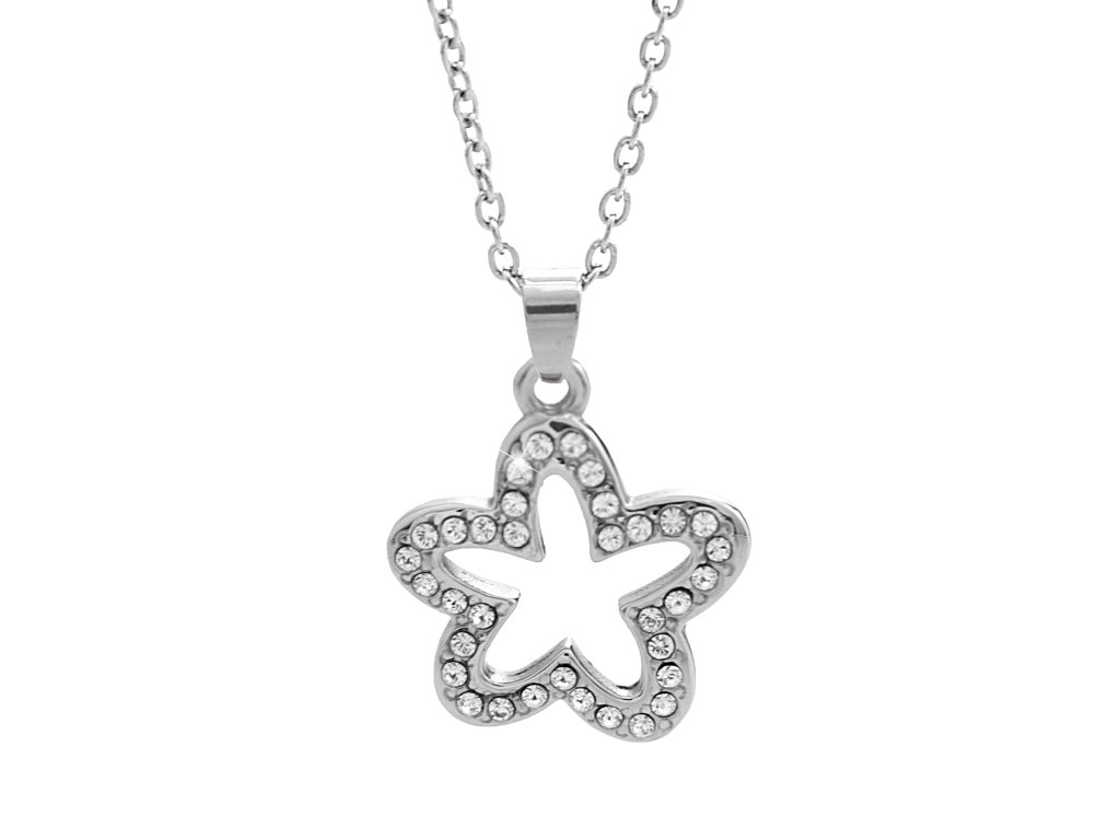 Ocelový náhrdelník obrysová zakulacená hvězda s krystaly Swarovski Crysrtal