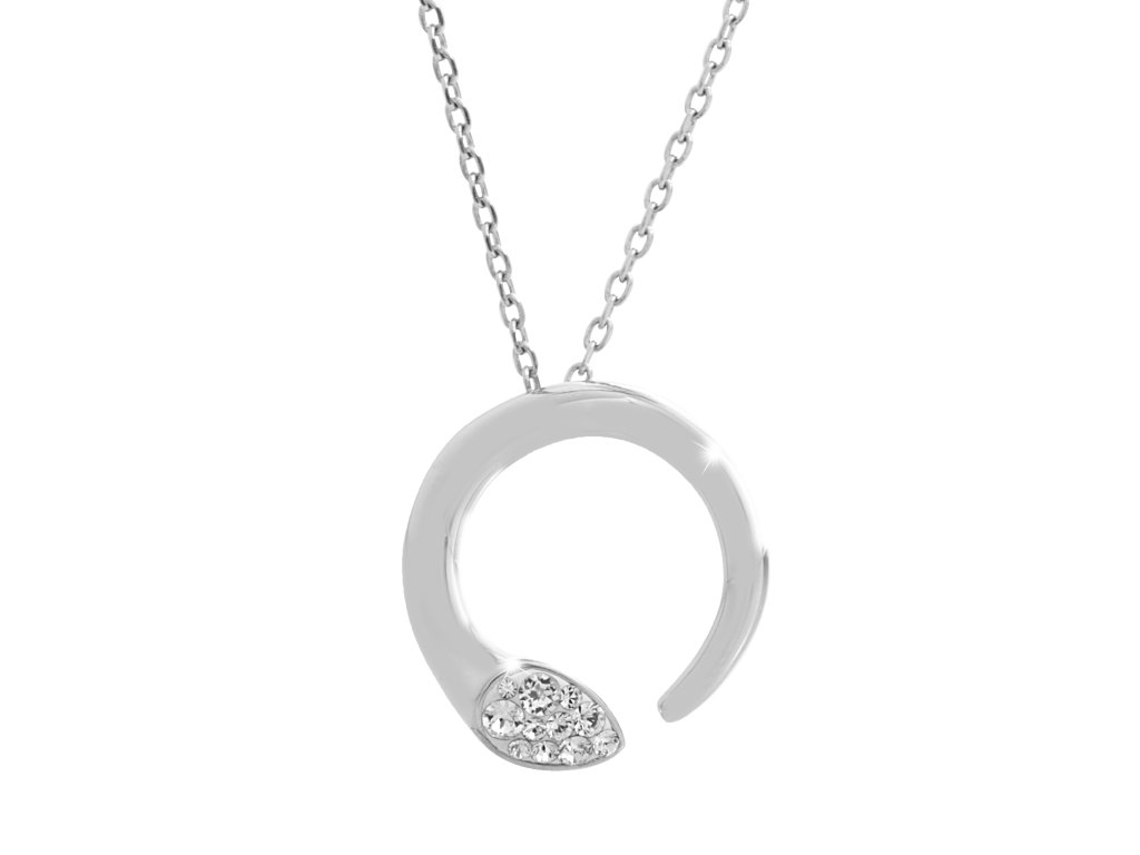 Ocelový náhrdelník otevřený kruh s kapkou a s krystaly Swarovski Crystal