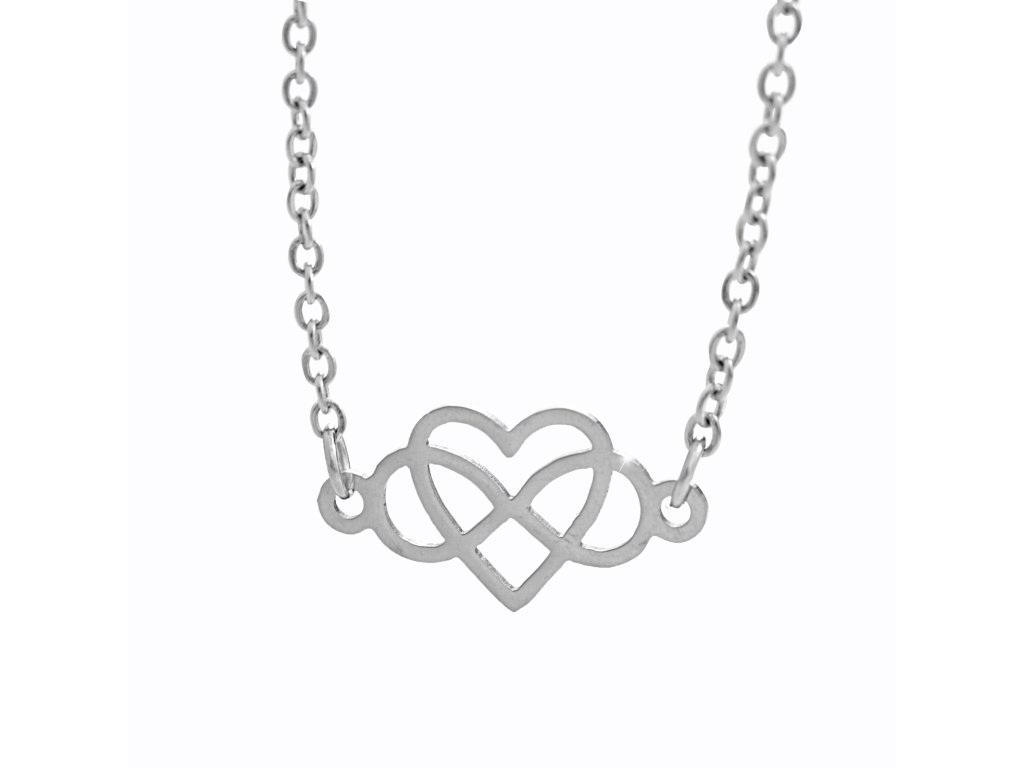 Ocelový náhrdelník prořezávané srdce a symbol nekonečna bez krystalů