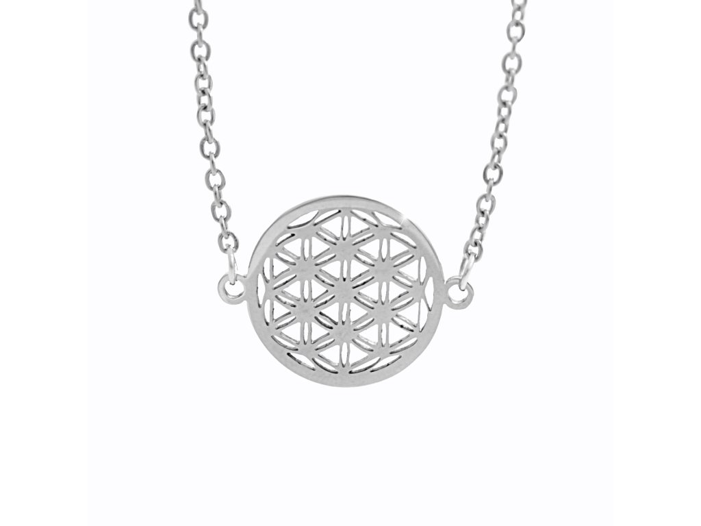 Ocelový náhrdelník prořezávaný květ života bez krystalů
