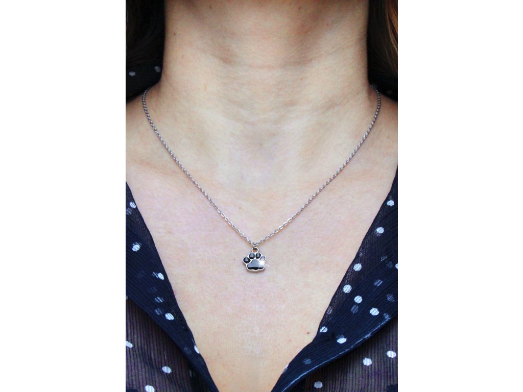 Ocelový náhrdelník psí tlapka s černým smaltem