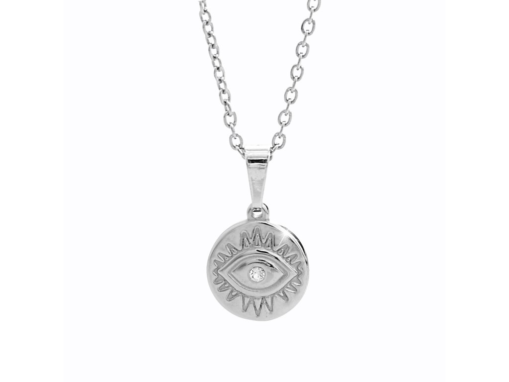 Ocelový náhrdelník reliéf oka s krystalem Swarovski Crystal