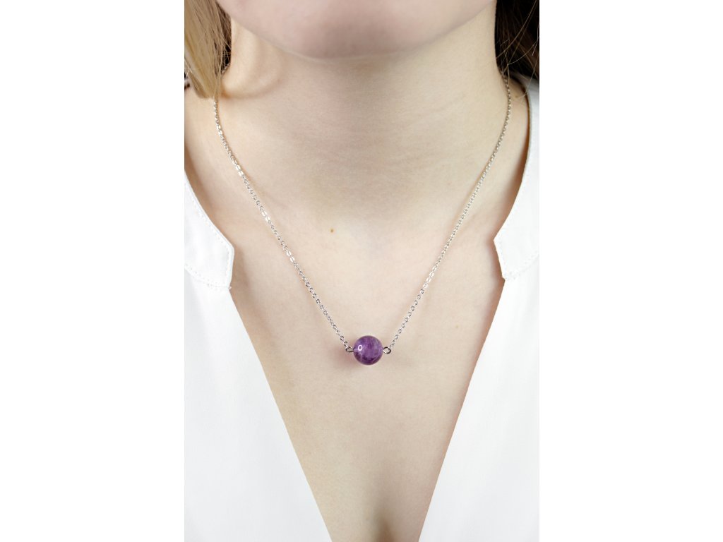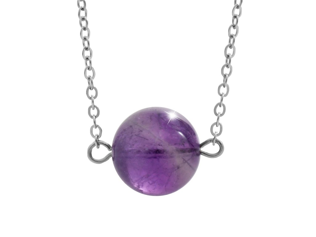 Ocelový náhrdelník s minerální kuličkou Amethyst