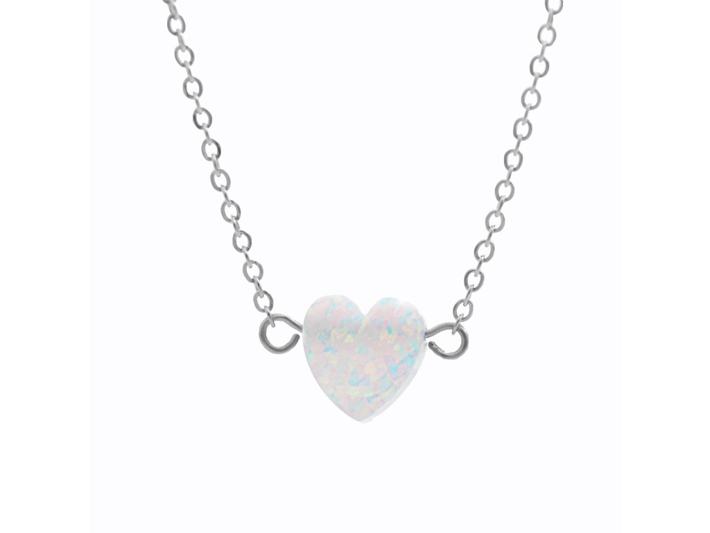 Ocelový náhrdelník s přívěskem srdce ze syntetického bílého opálu