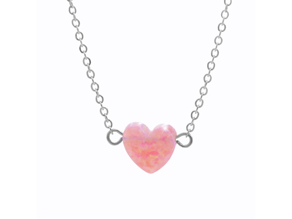Ocelový náhrdelník s přívěskem srdce ze syntetického růžového opálu