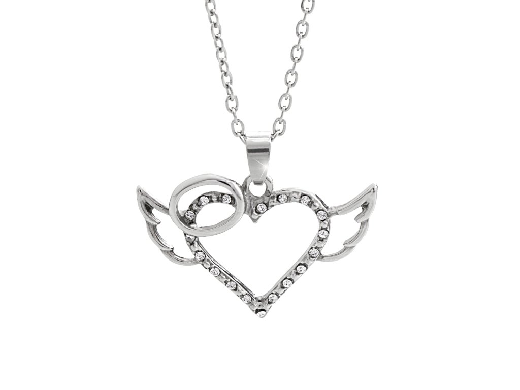 Ocelový náhrdelník srdce a anděl s krystaly Swarovski Crystal