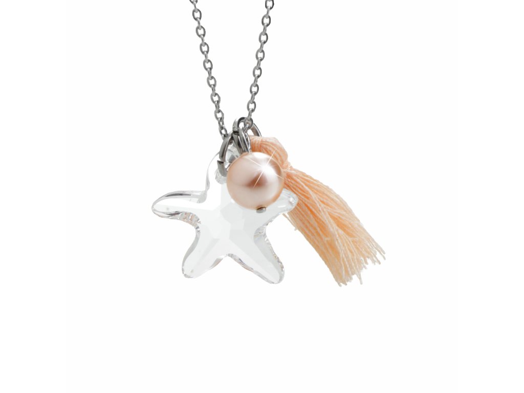 Ocelový náhrdelník střapec perla a krystal tvaru hvězdice Swarovski Crystal