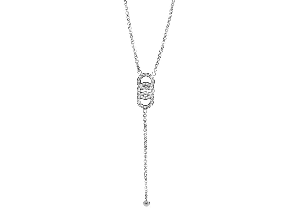 Ocelový náhrdelník tři kruhy s řetízkem osázený krystaly Swarovski Crystal
