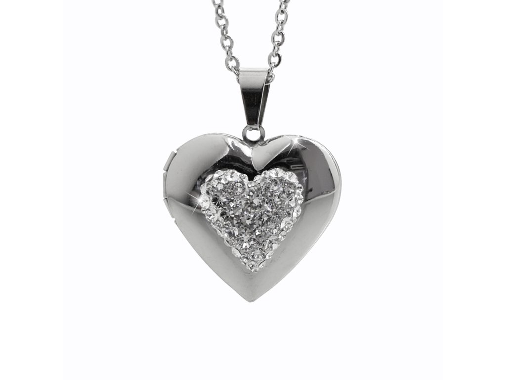 Ocelový náhrdelník velký srdcový medailon s krystaly Swarovski Crystal