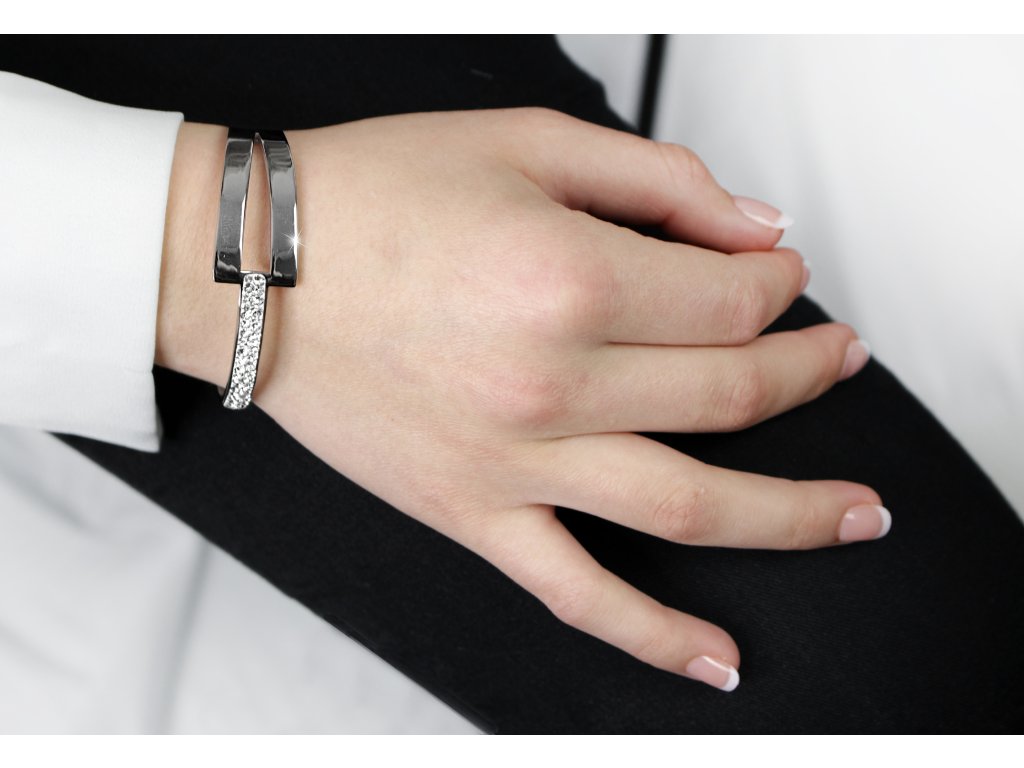 Ocelový náramek kovový trojúhelník a proužek s krystaly Swarovski Crystal