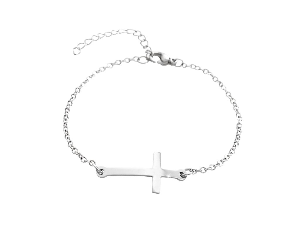 Ocelový náramek placatý větší kříž bez krystalů