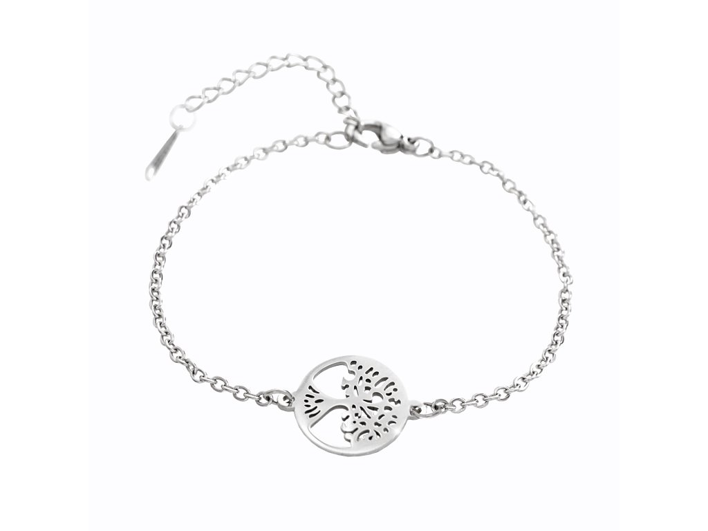 Ocelový náramek prořezávaný strom života v kruhu bez krystalů