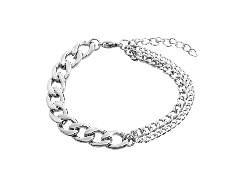 Ocelový náramek půl řetěz a půl dva řetízky bez krystalů
