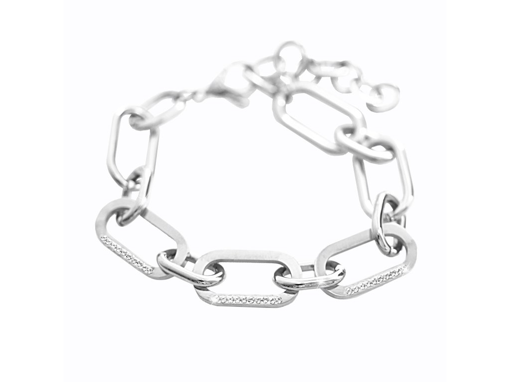 Ocelový náramek řetěz z oválů s krystaly Swarovski Crystal