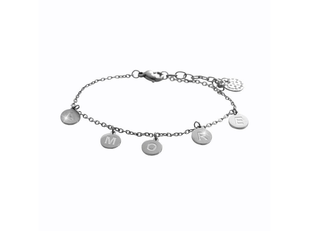 Ocelový náramek s ověsy amore a krystaly Swarovski Crystal