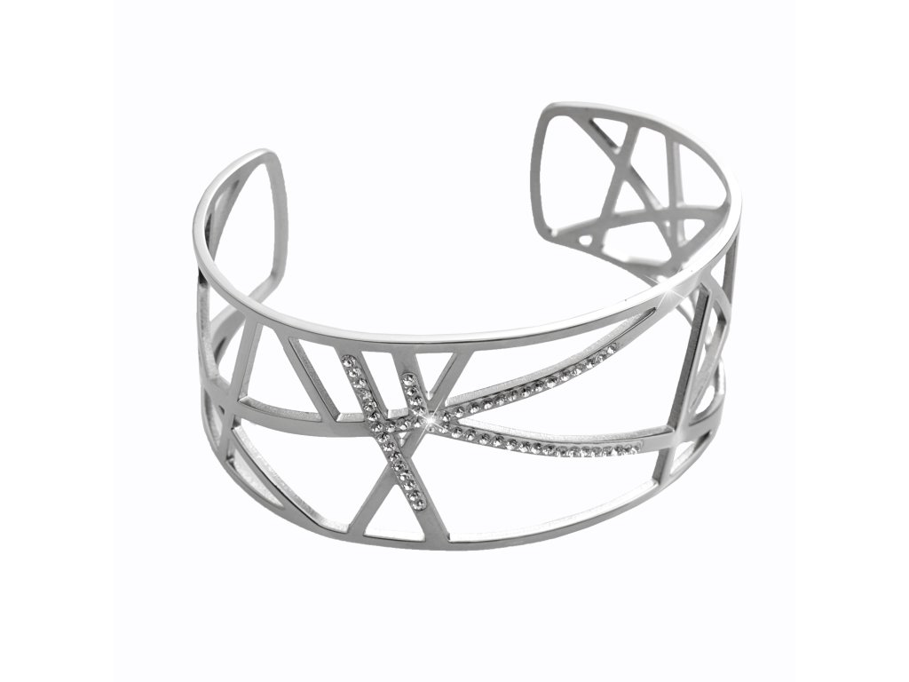 Ocelový náramek široký členitý zdobený krystaly Swarovski Crystal