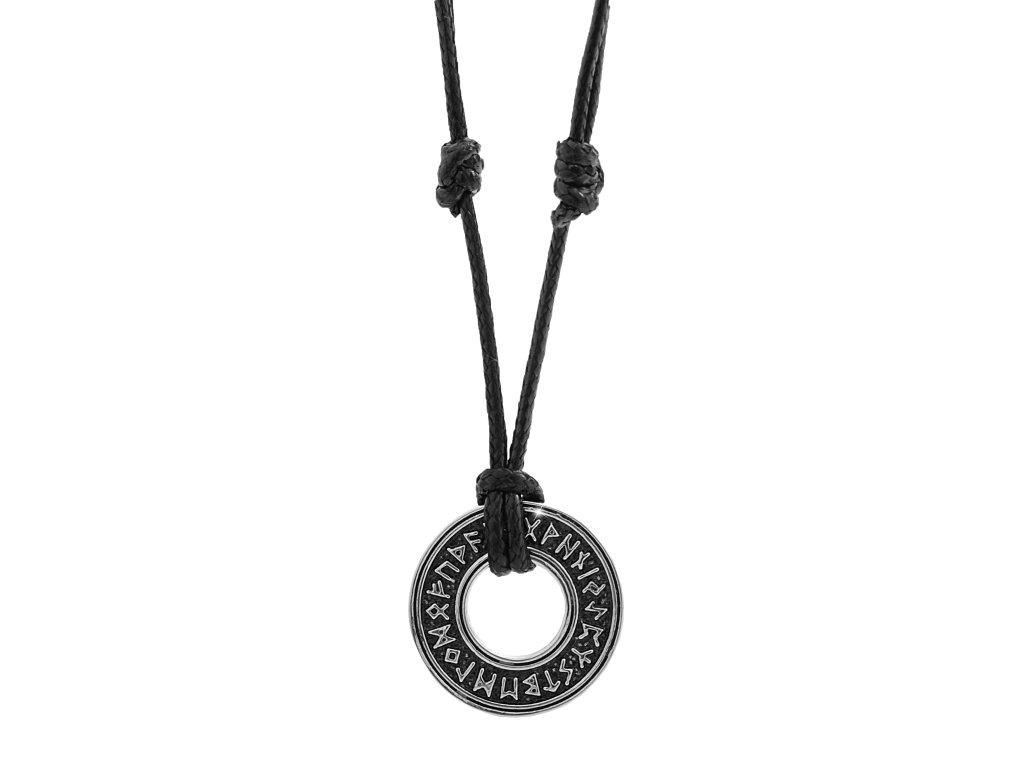 Pánský náhrdelník s ocelovým přívěskem ve tvaru kruhu se symboly vikingských run