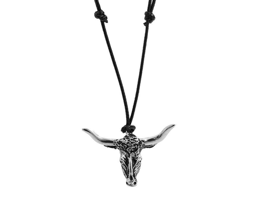 Pánský náhrdelník s ocelovým přívěskem ve tvaru zvířecí hlavy s rohy