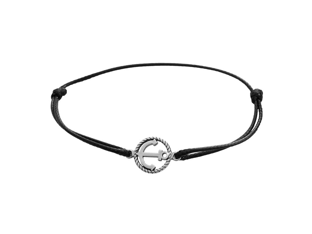 Pánský náramek s ocelovým přívěskem ve tvaru kotvy v kruhu