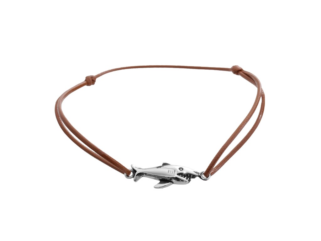 Pánský náramek s ocelovým přívěskem ve tvaru žraloka brown