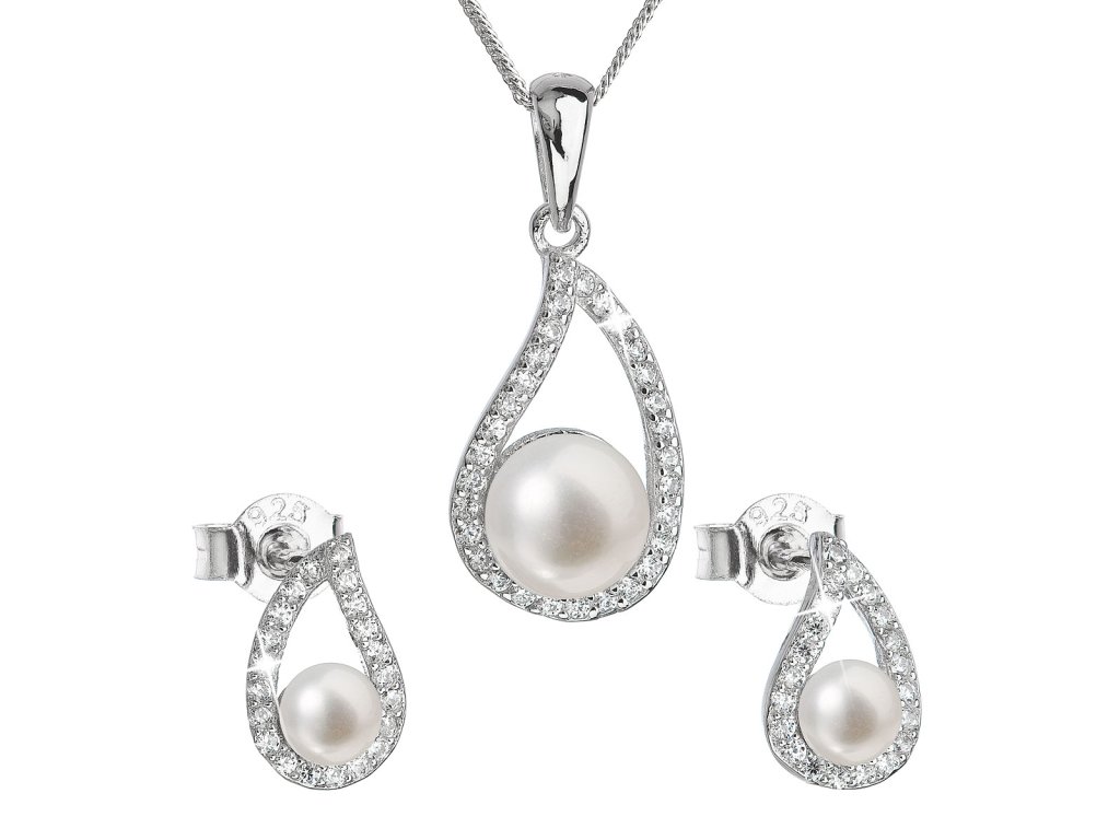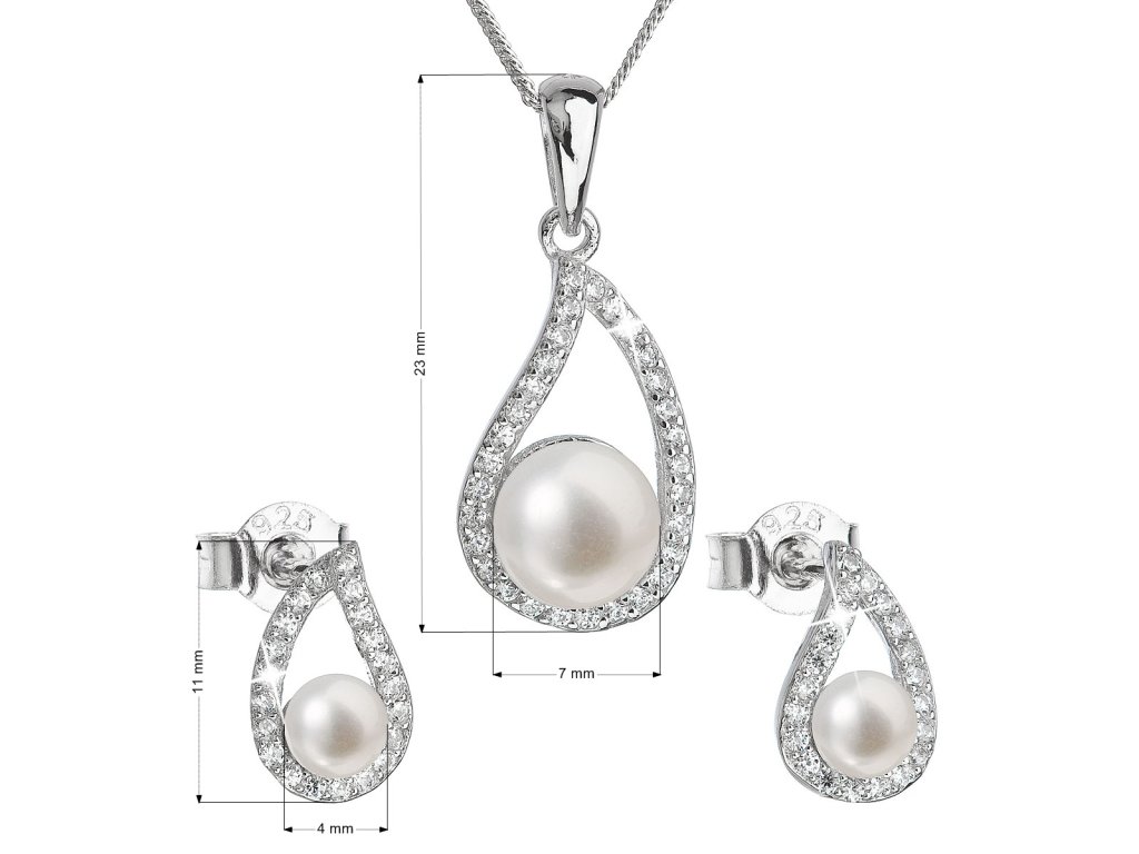 Perlová souprava obsahuje šperky vyrobené ze stříbra ryzosti 925/1000 včetně povrchové úpravy rhodiem, které jsou ve tvaru nápaditých slziček. V soupravě šperků najdete visací náušnice o délce 11 mm a 45 cm dlouhý náhrdelník s perlovým přívěškem. Perly, kterými jsou šperky zdobeny, spadají do kategorie nejvyšší kvality AAA. Kromě luxusních perel jsou šperky ze soupravy 29027.1 doplněny velkým množstvím malých zirkonů, díky nimž se šperky nádherně blýskají. Na náušnici jich najdete 22 a na přívěšku je zirkonů dokonce 30. Velkou výhodou šperků ze soupravy 29027.1 je to, že neobsahují nikl, a tak je bez obav mohou nosit i lidé náchylní k alergické reakci. Zapínání náušnic je na puzetu, která je ochrání proti nechtěné ztrátě.