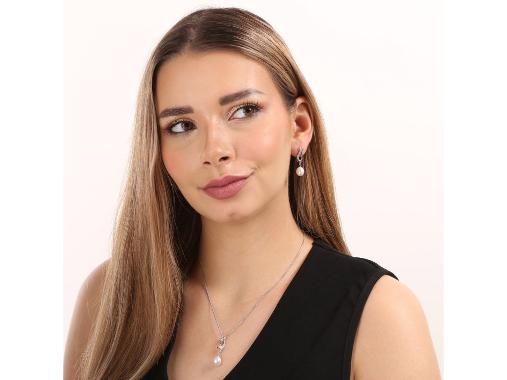 Souprava obsahuje 31 mm dlouhé visací náušnice s bílými oválnými perlami a náhrdelník s oválným perlovým přívěškem. Perly, kterými je souprava zdobena, spadají do kategorie nejvyšší kvality AAA. Luxusní perly doplňuje stříbro ryzosti 925/1000 a malé blyštivé zirkony. Náušnice zapnete na ruský patent, který je ochrání proti nechtěné ztrátě. Šperky ze soupravy 29028.1 neobsahují nikl, a tak je mohou beze strachu nosit i jedinci náchylní k alergické reakci.