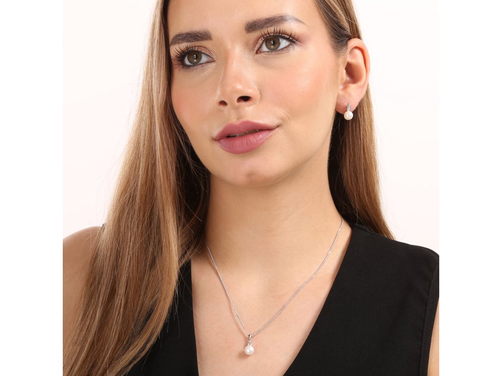 Věděli jste, že nošení perel prospívá vaší pokožce? Pak by vám šperky s perlami mezi doplňky rozhodně neměly chybět! Zkuste třeba soupravu z říčních perel 29035.1.Souprava obsahuje visací náušnice o délce 14 mm a náhrdelník s přívěškem dlouhý 45 cm. Šperky jsou vyrobeny ze stříbra o ryzosti 925/1000 s rhodiovanou povrchovou úpravou, jsou zdobeny uměle kultivovanými perlami v bílé barvě a doplněny několika blýskavými zirkony. Náušnice i přívěšek obsahují celkem 2 zirkony. Vzhledem k tomu, že šperky neobsahují nikl, jsou vhodné i pro alergiky. Zapínání náušnic je na balonek, který zamezí nechtěné ztrátě náušnice.